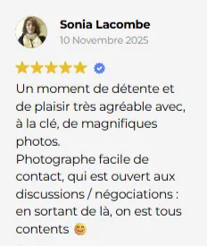 Chaque séance est pensée comme une expérience unique, simple et agréable, pour créer des photos dont vous serez vraiment fier.